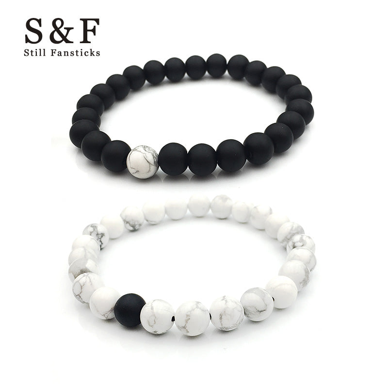 Couple Bracelet Charms Stone Beads Men Jewelry Crown